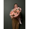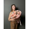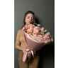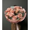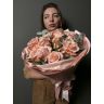 Нежные пионовидные розы аккуратно упакованы в дизайнерскую бумагу и перевязаны атласной лентой. Отличный подарок на день рождения, свадьбу.