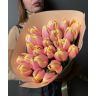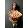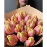 25 нежных тюльпанов аккуратно упакованы в дизайнерский крафт и перевязаны атласной лентой. Такой подарок уместно подарить на день рождения, 8 марта. Девушке, маме, жене.